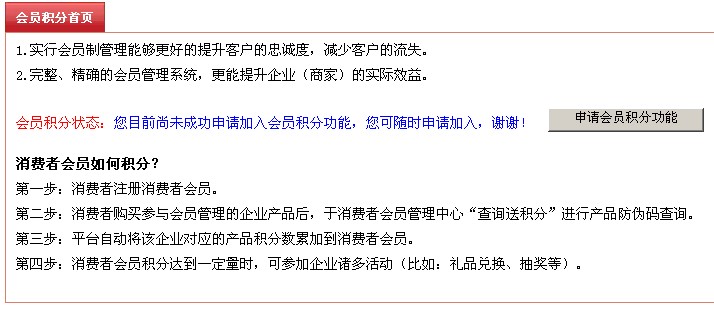于企业会员管理中心——>会员积分管理——>会员积分——>申请会员积分服务,提交申请后,等待服务审核,平台工作人员会尽快处理企业的会员积分申请事项;